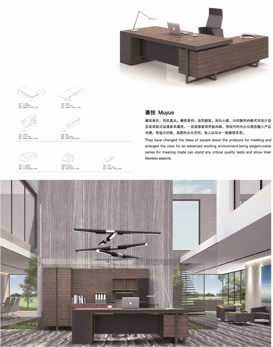幕其美名,悅其真品。幕悅系列,造型雅致,別出心裁,以創(chuàng)新性的格式化設計語言表現(xiàn)新式油漆家具潮流,一改油漆家具傳統(tǒng)風格,將現(xiàn)代時尚辦公理念融入產品內涵,營造出別致、典雅的辦公空間,給人以耳目一新感官享受。